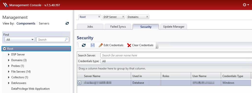 - Enter the name of the SQL server as it appears under the Security tab of the Management Console: